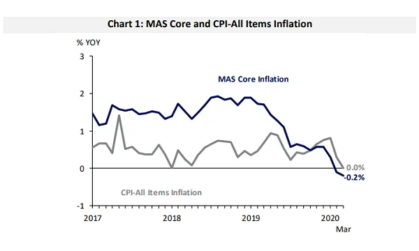 Moving forward, MAS is expecting both core inflation and CPI‐all items inflation to average between ‐1% and 0% in 2020 as COVID-19 continues to linger.