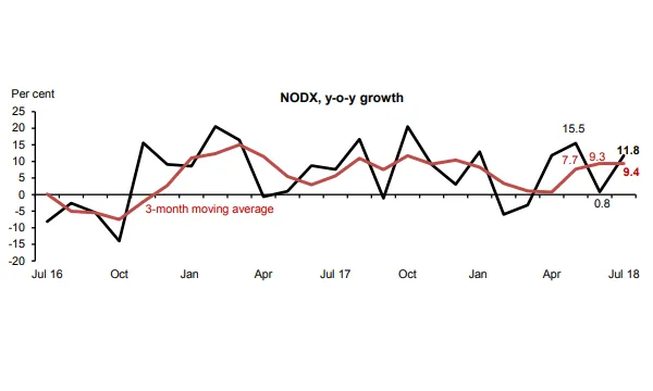Singapore’s non-oil domestic exports (NODX) in July 2018 grew by 11.8% following the 0.8% rise in June, Enterprise Singapore (ESG) revealed. Non-electronic exports continued to grow, whilst electronics declined.