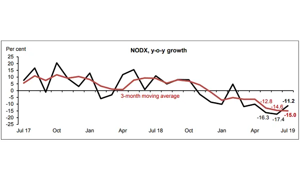 NODX decline narrowed to 11.2% in July