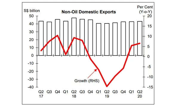 Non-oil domestic exports (NODX) climbed 6.5% YoY in Q2 driven by growth in non-monetary gold and pharmaceutical exports, according to data from Enterprise Singapore. On a QoQ SA basis, NODX dipped 2.4% after a 7.3% rise in Q1.