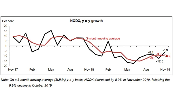 NODX's decline narrows to 5.9% in November