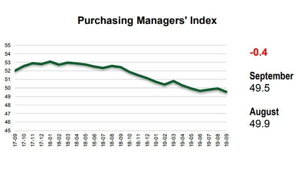 PMI falls to three-year low in September