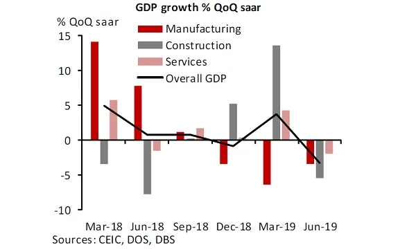 Singapore is expected to avert a technical recession in Q3 2019, as the economy is tipped to post growth of 2.1% QoQ saar and 0.4% YoY amidst slight improvement in the manufacturing sector, reported DBS Group Research. On a full year basis, GDP growth is poised to hit 0.7%.