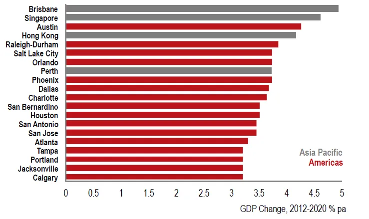 Of the 20 fast growing mature cities, only four comes from Asia and the rest are from US. Brisbane was ranked first followed by Singapore. The two other Asia Pac cities are HK and Perth.
