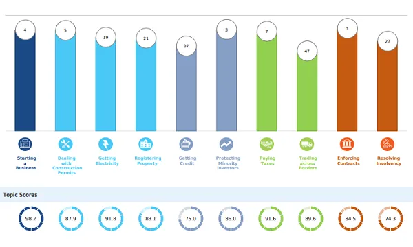 The study said that the city saw its highest score in the ‘starting a business’ category at 98.2, but ranked fourth globally. Singapore was also named the best market globally in enforcing contracts with a score of 84.5.