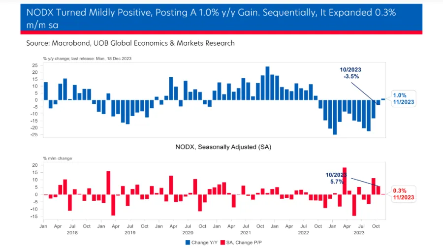 This follows the report by Enterprise Singapore of a 1% YoY gain in November for the overall NODX, the first in over a year since September 2022.