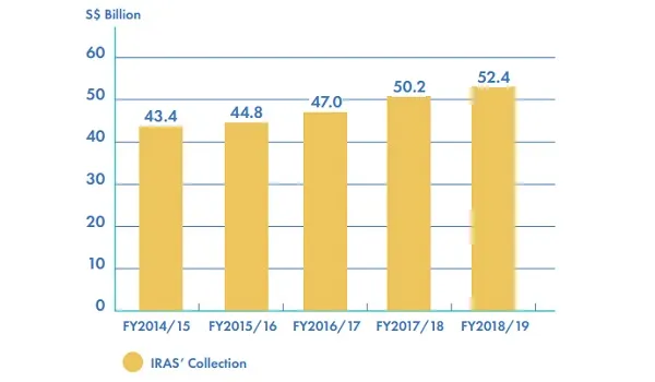 Tax revenue collected in FY 2018/19 climbed 4.4% to $52.4b from $50.2b in the previous fiscal year, according to the Inland Revenue Authority of Singapore (IRAS).