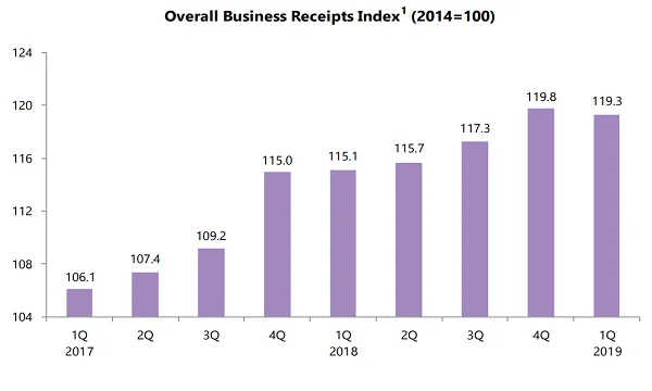Total business receipts climbed 3.6% in Q1