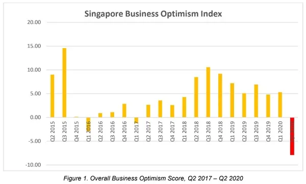 Business optimism amongst local firms dipped 7.88 percentage points (ppt), both on a QoQ and YoY basis, for Q2 after profits and sales volumes went down in Q1, according to Singapore Commercial Credit Bureau’s (SCCB) Business Optimism Index report.