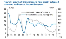 The growth of financial assets has been outpacing consumer loans for two years.