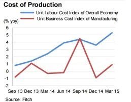 Unit labour costs rose by 5.3% in Q1.