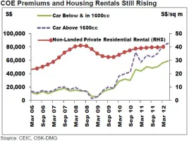 Chart of the Day: COE premiums and housing rentals continue to rise