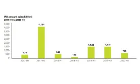 IPO fundraising plunged 53.2% to $725m in H1