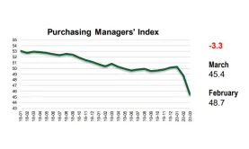 Faster contractions in finished goods, imports, input prices, and order backlog dragged it down.