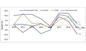 This is blamed on oil trade as it fell 13.9% in 2019 amidst lower oil prices.