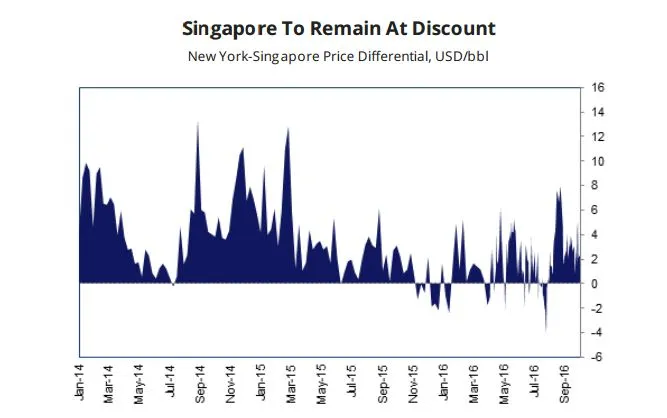 "Our view that Singapore prices will trade at a discount to its regional peers played out over Q316. We expect this trend to continue with Singapore forecast to deepen its discount to New York as supply outstrips demand in the Asia region," the research firm noted.