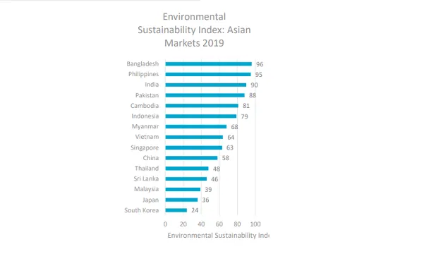 This chart by Euromonitor shows that the Singaporean market ranks 7th in Asia in Euromonitor’s Environmental Sustainability Index in 2019.