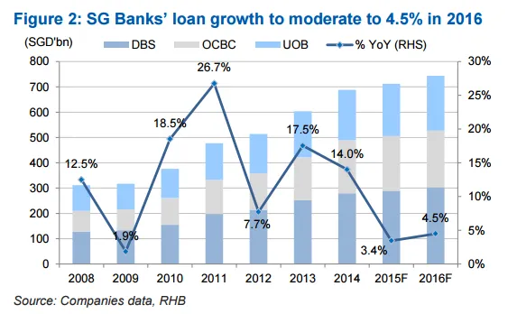 "Domestic loan demand is soft, reflecting Singapore’s low GDP growth, while the regional lending business is being dampened by China’s slowdown and its knock-on effect on ASEAN economies. Supporting net interest income would be stable NIMs," says RHB.