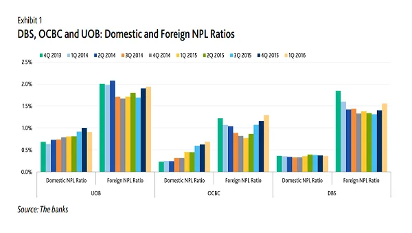 "The three banks reported higher non-performing foreign loans in the first quarter of 2016, with DBS and OCBC leading the increase," Moody's said.