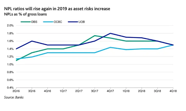 The year-end uptick in the bad loans of OCBC and UOB signals tougher times ahead for banks in Singapore as asset quality is set to deteriorate further against a weak operating environment.