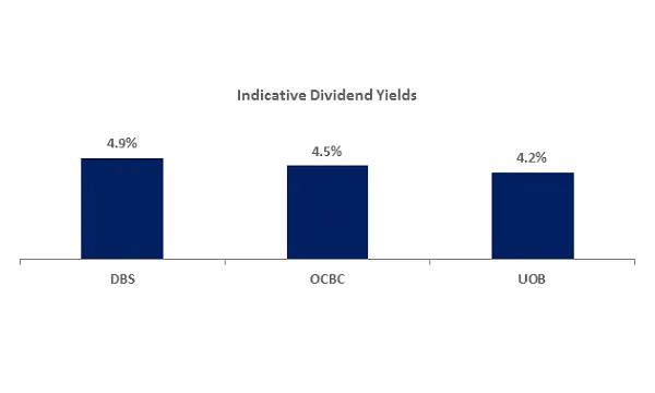 DBS Group (DBS), Oversea-Chinese Banking Corp (OCBC) and United Overseas Bank (UOB) have maintained an average indicative dividend yield of 4.5% in H1 as the Big Three continues to enjoy strong profit growth, according to an SGX report.