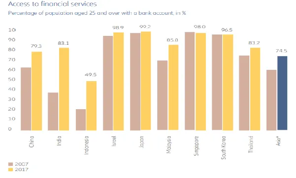 Bank deposits were the most popular type of investment in Asia back in 2017, with 74.5% having a bank account.