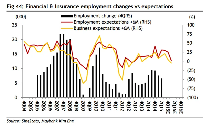 "While hiring forecasts are firm at 12%, Financial & Insurance’s low score of 1% was a marked deterioration from its 25% in the earlier quarter," said Maybank Kim Eng.