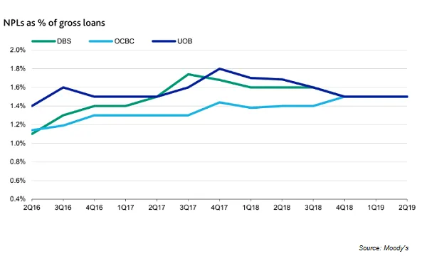 Although the non-performing loan (NPL) ratio of all three banks held steady at 1.5% in the first six months of 2019, banks in Singapore should brace in anticipation of mounting risks that will weigh in on asset quality and push credit costs up, according to Moody’s Investors Service.