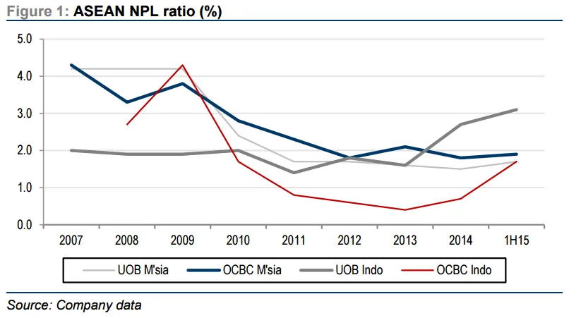 OCBC’s Malaysia non-performing loans (NPLs) rose 10% on a quarter-on-quarter basis, while Indonesian NPLS surged by a staggering 139% quarter-on-quarter.