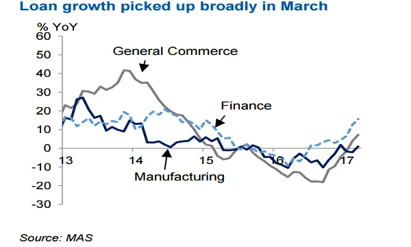 This reflects a broader pick-up in economic activities. Similarly, consumer loans rose 2.2% YoY in March, improving from a 0.8% jump in the month before. Housing & bridging loans increased slightly, while professional & private individual loans contracted at a slower pace.