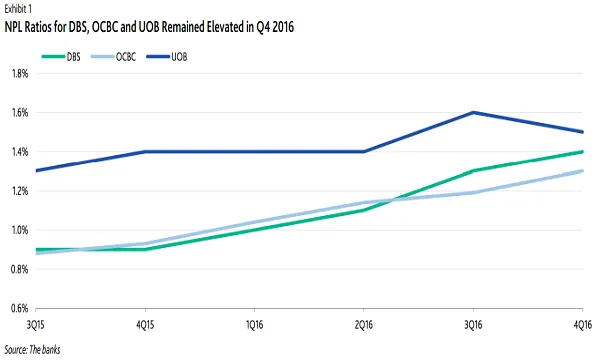 The said bank narrowed its gap between the other two. The non-performing loan ratio of DBS and OCBC continued to increase moderately in the past quarter, driven mainly by their lending to oil & gas service companies which have been the most severely impacted by low oil prices.