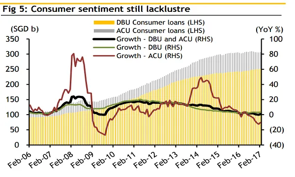 Credit cards and car loans both grew yoy in the said month at 5.1% and 0.2%, respectively. However, both are unable to support the overall slack as they form only 6% of total consumer loans.