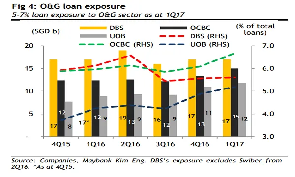 According to Maybank Kim Eng, lending to the O&G sector rose 6-20% QoQ from higher exposures to upstream and the less risky downstream/traders segment between 4Q16 to 1Q17.