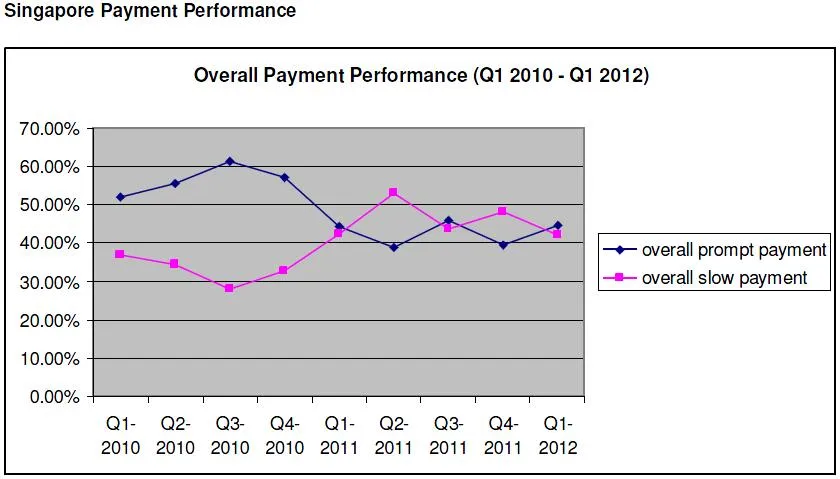 As the local economy contends with the Eurozone sovereign-debt crisis and continued restrained growth prospects in the US, recovery remains sluggish and is likely to be muted for the rest of the year. However, payment performance of local firms showed positive signs of change in the first quarter of 2012 as slow payments bottomed out to its lowest level in 12 months.