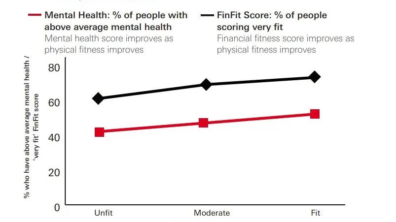 This chart from the HSBC Life +Factor Study shows the relationship between physical fitness, mental health and financial fitness.