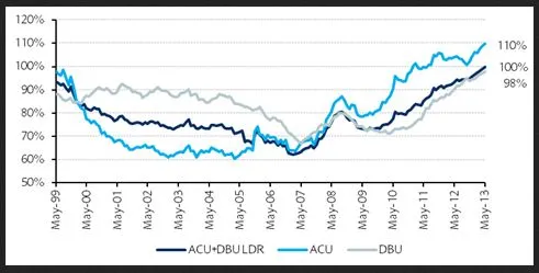 As loan growth (1.2% m/m) again outpaced deposit growth of (0.5% m/m), system (ACU+DBU) loan to deposit ratio rose to 99.8%, another record high since 1999. ACU LDR reached 109.8% while DBU LDR reached 97.8%. Despite the high LDR, we believe Singapore is still one of the most resilient markets in EM Asia to liquidity outflows