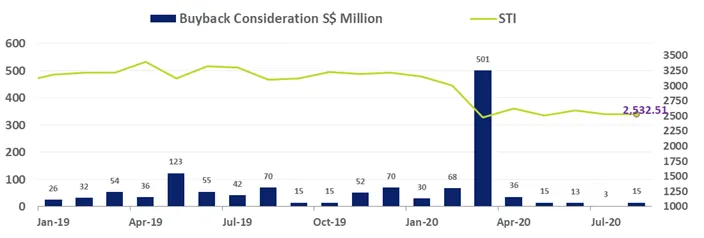 Overall, total consideration of share buybacks for SGX primary-listed stocks has now reached $681m for the first eight months of 2020, up from $590m in consideration for the entire calendar year of 2019.