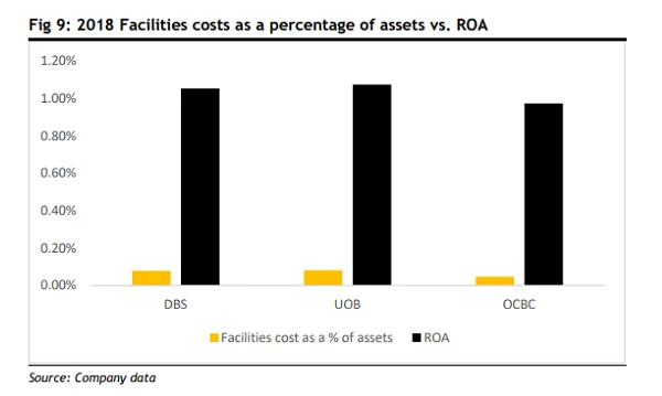 Virtual banks should not rest easy with the cost advantage and returns outlook associated with no physical branch networks. The costs of maintaining these facilities as a percentage of the assets of the city's top three banks is only an average of 7bps compared to 103 bps in ROA, according to Maybank Kim Eng.
