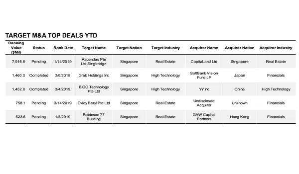 Overall Singapore announced M&A activity hit US$24.2b so far this year, making it the strongest start for Singapore-involvement M&A since 2014.
