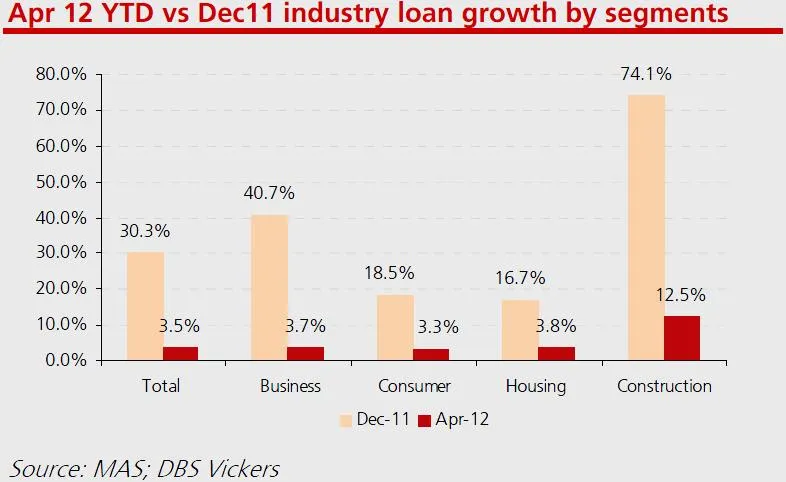 The slower loan growth trend is expected. Loan growth in April 12 moderated further to 24.0% y-o-y and 0.6% m-o-m, bringing YTD loan growth to 3.5%.