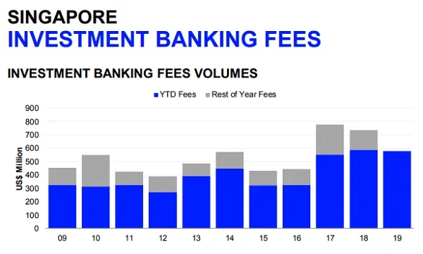 Investment banking fees in Singapore dipped 2% YoY to $796.12m (US$577.8m) in the first nine months of 2019, Refinitiv reported.