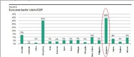 Singapore exhibits highest reliance on Euro banks with more than a third or 39% of its GDP are Euro banks' claims.