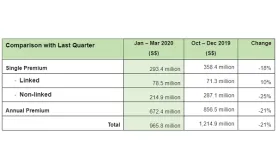New life insurance business premiums up 10% in Q1