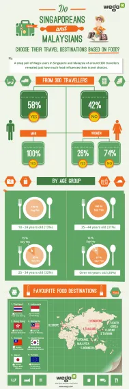 A snap poll of 300 Singaporean and Malaysian travellers by travel metasearch site Wego revealed that almost 60 percent select their destinations based on local food experiences.