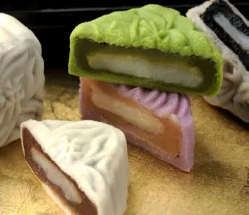 Each box of 8 handmade snowskin mooncakes comes in an assortment of 4 traditional flavours – azuki (red bean), matcha (green tea), goma (black sesame), and satoimo (yam).