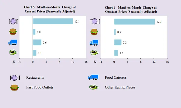 Fastfood outlets' sales also grew, reflecting an 8.3% growth. Restaurants and other eating places also posted growths at 3.4% and 0.2%, respectively.