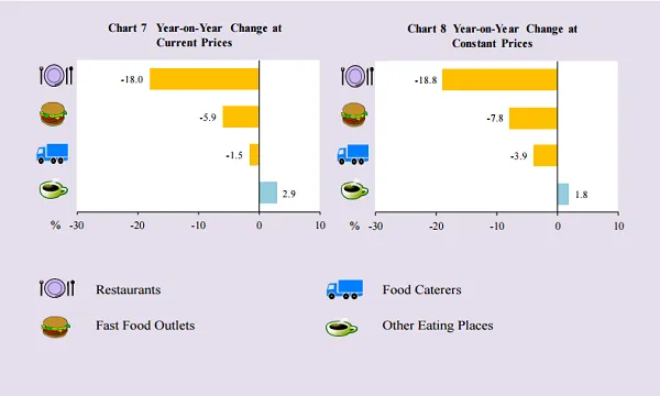 Restaurant sales were down 18% in the said month compared to the turnover registered last year. Similarly, fast food and food caterers sales decreased by 5.9% and 1.5%, respectively.