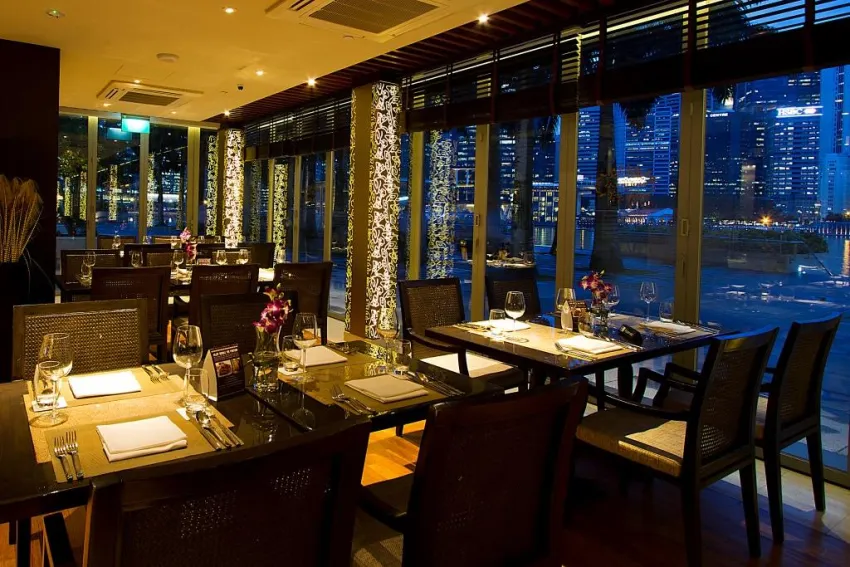 Besides the food at The Moluccas Room, the blend of authentic and contemporary is further reflected in the interior decors featuring stylish dark wood furniture, illuminated intricate batil motifs, and custom made tableware. Full glass windows on one side of the restaurant offer a scenic view of the Marina Bay.
