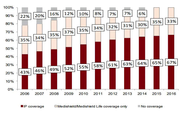 According to the Ministry of Health (MOH), IP coverage grew at a steady 6% CAGR over 2006-15, possibly driven by rising affluence and an ageing population.