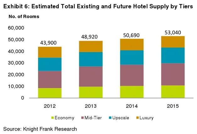 According to Knight Frank, an estimated 53,000 hotel rooms are expected to be available by 2015, based on projects which have received planning approval.